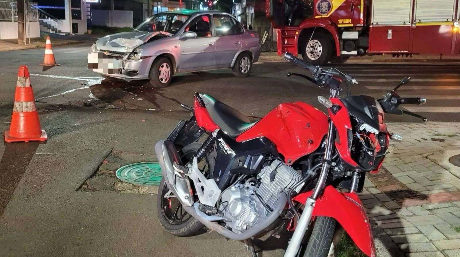 Acidente entre motocicleta e carro deixa motociclista ferido em Pato Branco